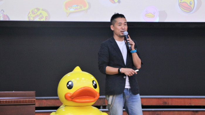 讲座中,许夏林先生通过视频介绍了公司基本情况,并向同学们讲述了他创立B.DUCK的初心——希望创作一个可爱的鸭子陪伴孩子长大。公司致力于打造中国最大的自主品牌IP,从2010年起,大力拓展品牌的授权业务,同多个自媒体平台、多个知名品牌联名合作进行品牌宣传和推广;同时,为了防止品牌老化、扩大品牌适用群体,公司不断进行IP优化及品牌品类延伸,B.DUCK连续两年荣获中国第三大自主IP。至今,小黄鸭的品牌授权费已超过100亿元,小黄鸭产品已推广到生活的方方面面。