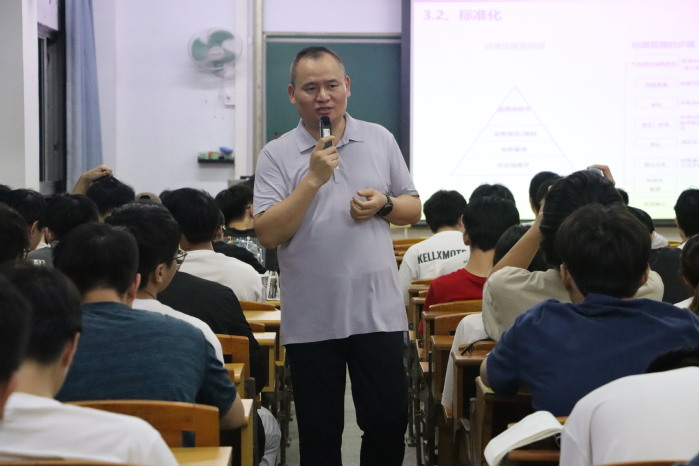 2025年10月30日晚,惠州学院仲恺信息学院在电子楼402课室成功举办了“洞察本质,系统破局:高阶问题分析与精益改善之道”主题讲座。本次讲座特邀广东华翊智能科技有限公司总经理叶梗楠先生担任主讲嘉宾,仲恺信息学院黄剑锋副院长、徐琰宸老师及100多名学生参加。嘉宾以一线企业家的身份,为我院学子系统梳理管理学知识,帮助他们提前构建岗位认知,为未来顺利衔接职场、胜任管理岗位奠定坚实基础。