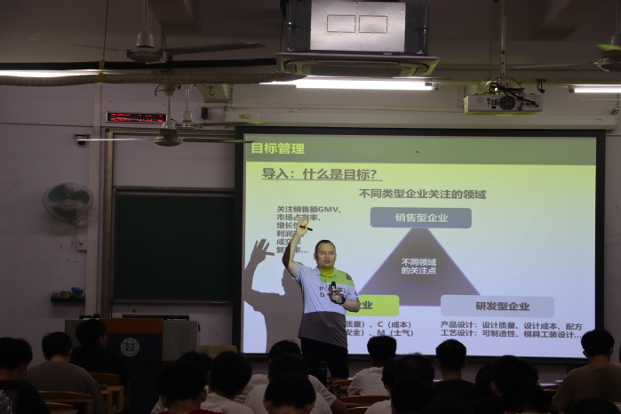 讲座围绕“目标管理、问题分析与改善管理”三大核心能力展开。叶梗楠先生结合其二十余年世界500强企业高管与顾问经验,通过生动案例与实用工具,引导同学们逐步构建系统化的问题解决思维。他不仅分享了精益生产与智能制造的实战方法,还就学生在学业规划、项目执行中常遇的困惑提供了具体可行的改善策略。